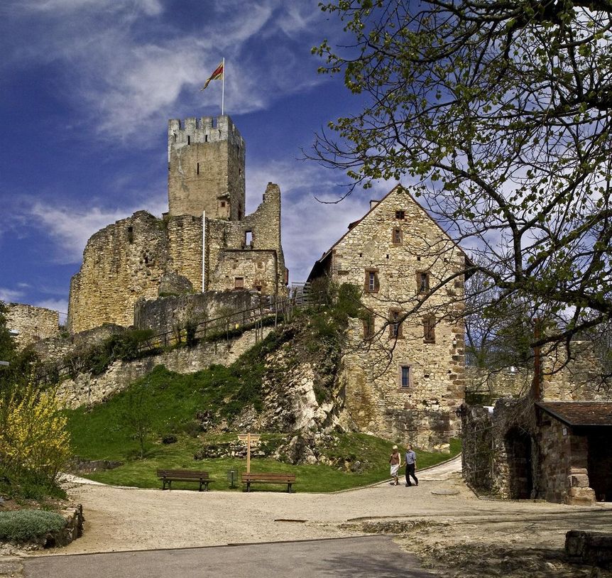 1259 ist die Burg Rötteln erstmals urkundlich genannt. Doch sie muss älter sein, schließlich nannten sich die Herren von Rötteln nach ihrem Stammsitz am Rand des Südschwarzwalds. Und ihr Name ist erstmals 1103 in einer Urkunde zu lesen. Die Herren von Rötteln bauten den Kernbereich der Burg, die sogenannte Oberburg, mit dem gut erhaltenen Bergfried und dem Palas, von dem nur noch die Außenmauern und der Weinkeller erhalten sind.
